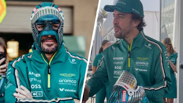 Fórmula 1 24/10/2025 Video Fernando Alonso luce y presume en el GP de México la máscara de luchador que RÉCORD le regaló