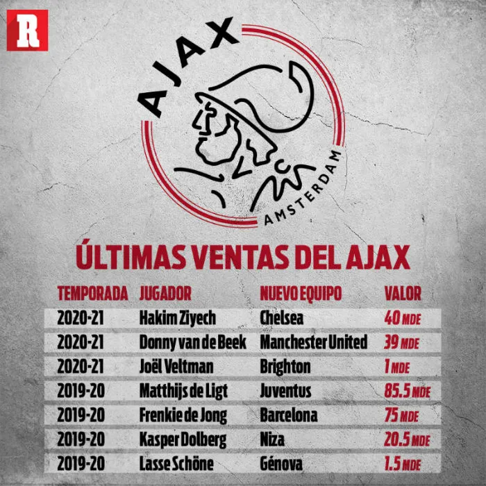 Ahora, pese a la pandemia que supone problemas económicos en el mundo del futbol y en el mundo en general, los clubes ingleses fueron a Ámsterdam a fichar. El Chelsea se llevó a Ziyech y el Manchester United recién compró a Van de Beek, dejando un ingreso al club de 79 mde. Este verano también se fue Veltman, fichado por el Brighton, club de la Premier League.