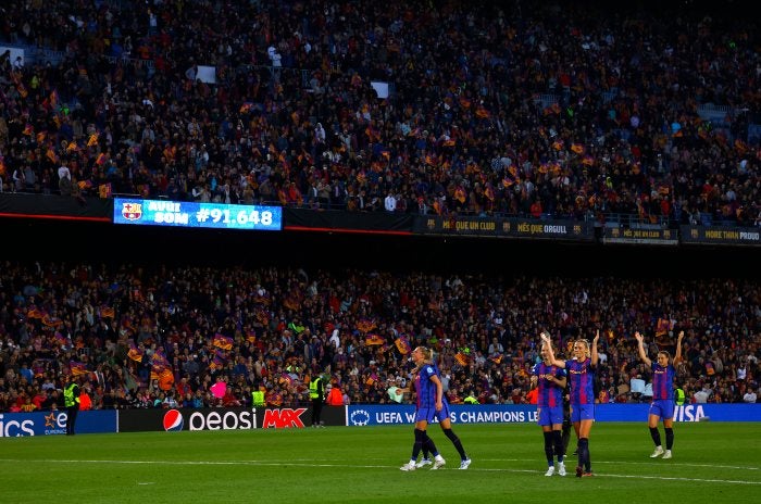 Por segunda vez en un mes el Camp Nou logró batir el récord mundial de asistencia en un partido de futbol femenino. En los Cuartos de Final ante el Real Madrid presenciaron el encuentro 91 mil 553 aficionados. Este viernes ante el Wolfsburgo fueron 91 mil 648 las personas que dejaron una estampa histórica en el feudo azulgrana.