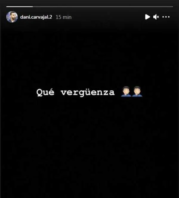 Dani Carvajal, lateral español del Real Madrid, se quejó en su cuenta oficial de Instagram de la decisión del árbitro Juan Martínez Munuera de señalar mano dentro del área del brasileño Éder Militao, y lo describió como una “vergüenza”.