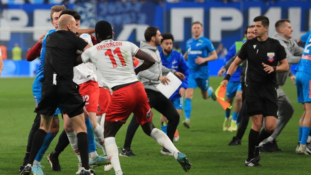 El partido de la Copa de Rusia entre Zenit y Spartak de Moscú terminó en una batalla campal en el campo.