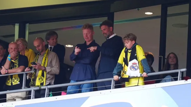 Klopp, que dejó el Liverpool después de casi nueve temporadas, estaba sentado en lo que parecía ser un palco corporativo. Apareció en la pantalla grande y provocó aplausos cuando sonrió y levantó ambos puños en el aire.