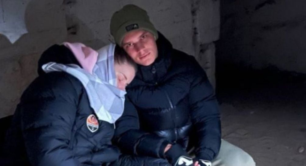 A través de redes sociales se viralizó la imagen del jugador junto a su pareja, con quien está esperando su primer hijo, adentro del refugio con ropa para pasar el frío. De hecho, días antes de los primeros bombardeos, los dos se comprometieron.