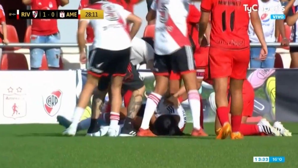 Sin embargo, unos segundos después, la lateral izquierda de River se desvaneció en el césped y comenzó a sufrir convulsiones. De inmediato, jugadoras de River y de América de Cali se juntaron para rodear a la jugadora y evitar imágenes sobre el incidente.