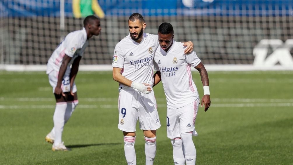 Las imagenes de la televisión francesa RMC mostraron al delantero francés junto a su compatriota Mendy teniendo una conversación, en donde se quejaban, al parecer, de la actuación de Vinicius.