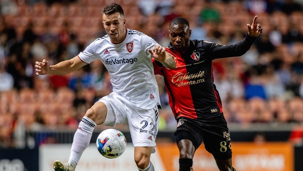 Aaron Herrera, defensa del Real Salt Lake, anotó gol desde aproximadamente 70 metros de distancia al Atlas durante partido de la Leagues Cup 2022 en la cancha del America First Field.
