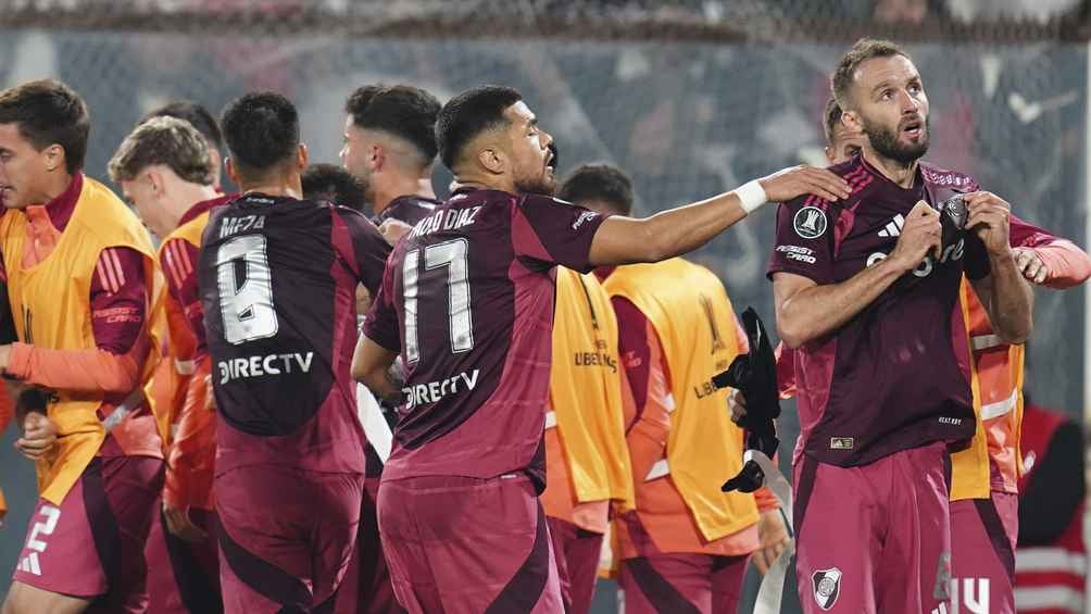 Ambos equipos terminaron con 10 jugadores por la expulsión a los 90 minutos del chileno de River Paulo Díaz y el uruguayo de Colo Colo Maximiliano Falcón tras ver dos amarillas consecutivas por agarrarse reiteradamente antes de un tiro de esquina.