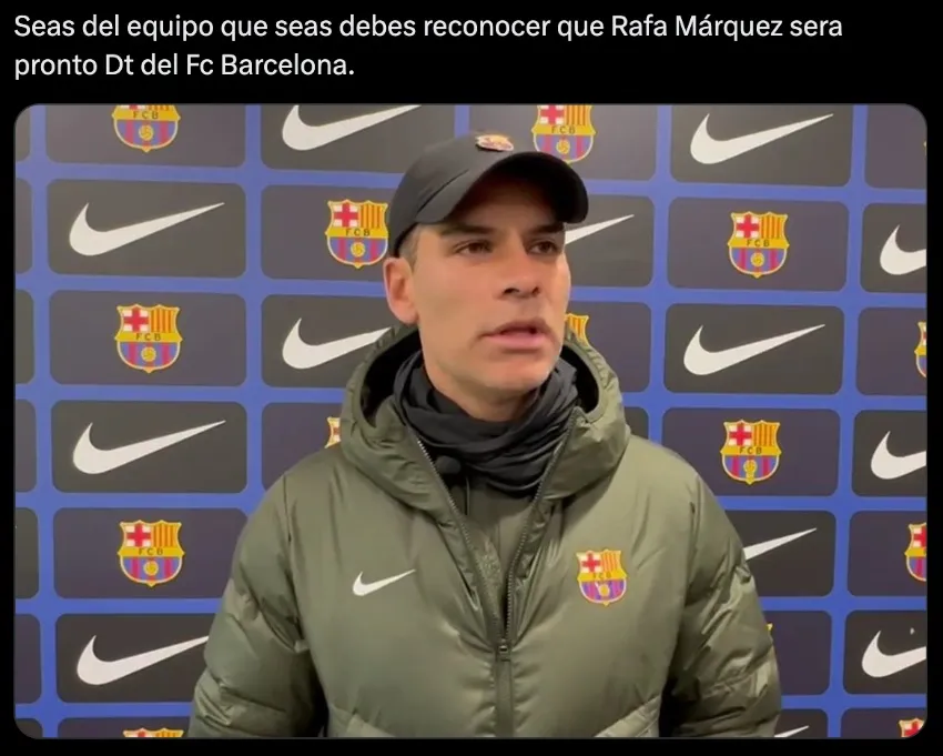 La posibilidad de que Rafael Márquez tome las riendas del primer equipo ha ganado fuerza entre los aficionados, quienes a través de memes e imágenes expresan su deseo de ver al excapitán de la Selección Mexicana liderando al Barcelona.