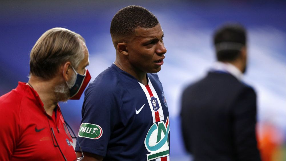 Mbappé fue tratado en el vestuario del que salió apoyado en unas muletas y con el pie inmovilizado para seguir el final del partido y participar en la celebración del título obtenido gracias al gol de Neymar.