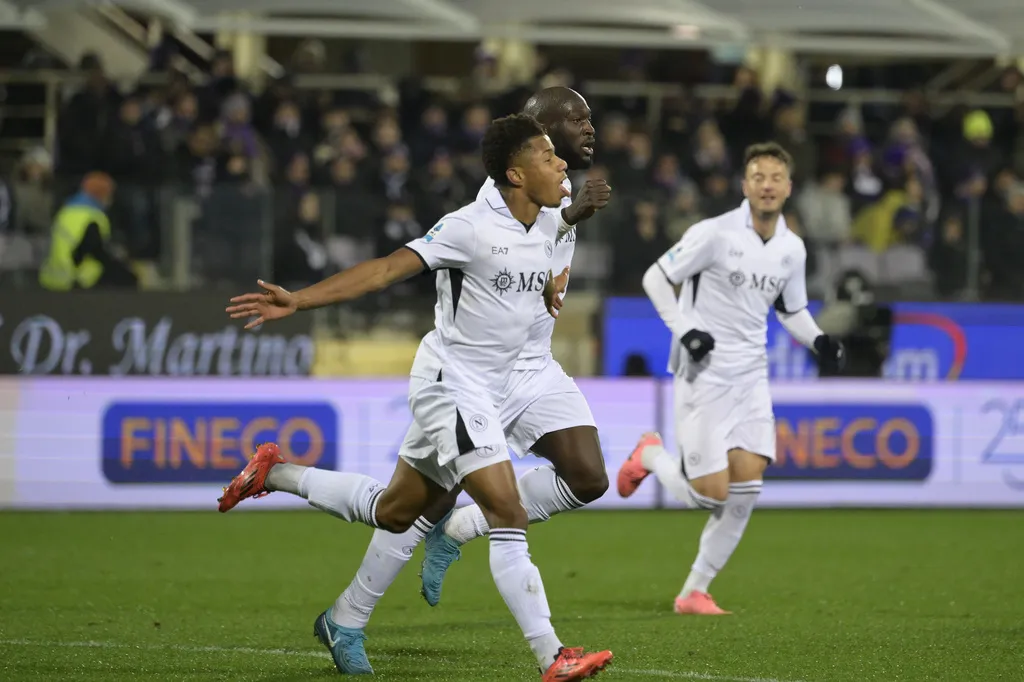 Neres puso a Napoli en ventaja cerca de la media hora de juego al driblar entre tres defensores y disparar a un ángulo con su pie derecho, el menos hábil.