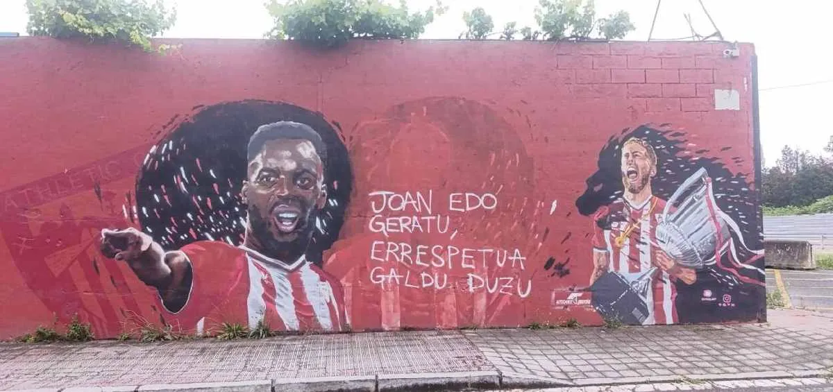 El icónico mural solamente quedan el resto de figuras, el otro de los Williams, Iñaki, e Iker Muniain. Esta pintura es del artista Carlos López y ha sido un lugar especial para los seguidores del conjunto rojiblanco.