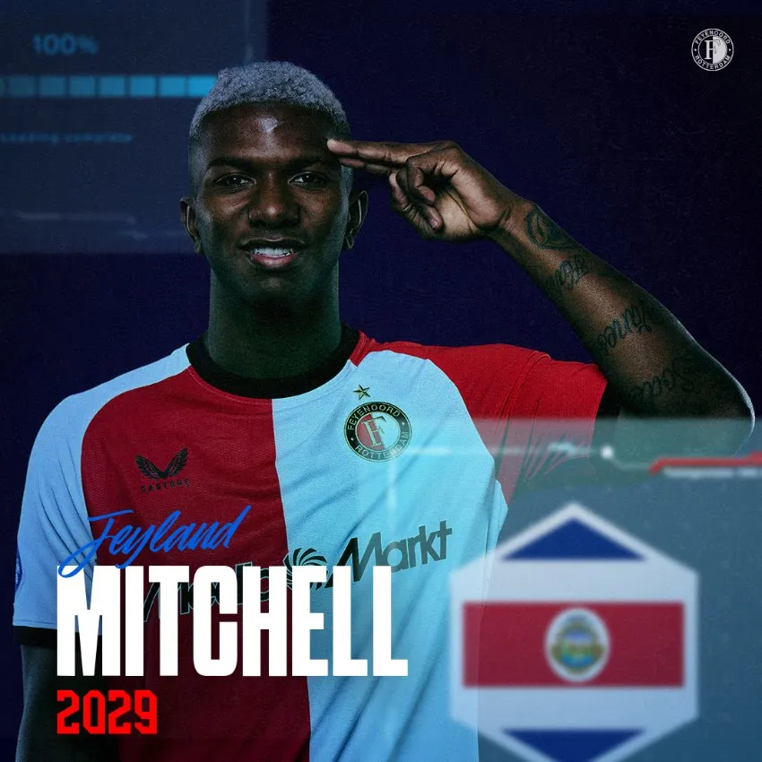 "Liga Deportiva Alajuelense se enorgullece en anunciar la transferencia del defensor de 19 años, Jeyland Mitchell, al Feyenoord Rotterdam de los Países Bajos. Es un momento de gran orgullo y alegría para nuestra institución, ver cómo uno de nuestros jóvenes del CAR da un paso significativo en su carrera, uniéndose a uno de los clubes más históricos y prestigiosos de Países Bajos", declaró el club costarricense en un comunicado.