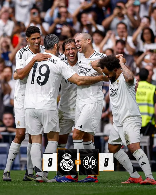El marcador fue inaugurado por Julio Baptista al minuto 4', seguido por los tantos de Sven Bender al 16' y Lucas Barrios al minuto 22’ para el Dortmund. Luego del empate de Kroos, Raúl González Blanco anotó el 3-2 con un cabezazo espectacular en el 54’, y Marcio Amoroso selló el 3-3 final. El portero Weidenfeller también fue protagonista al evitar el cuarto gol madridista tras una llegada de Pepe.