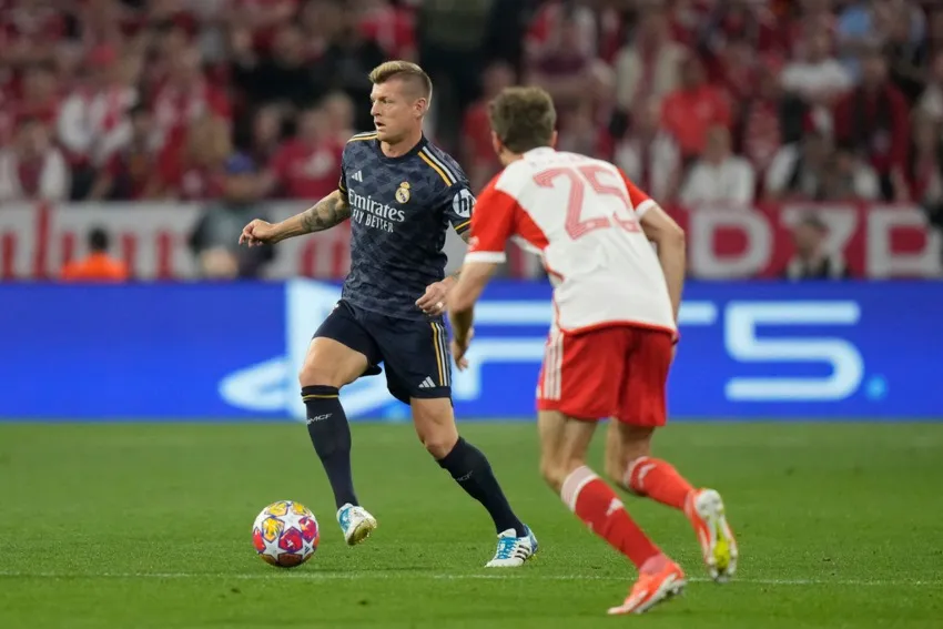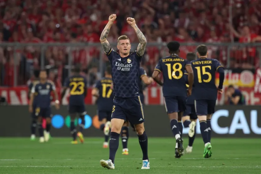 Vinícius Jr, atacante del Real Madrid, quien anotó doblete este martes en la Semifinal de Ida de la Champions ante el Bayern Munich, elogió a su compañero Toni Kroos por el pase magistral que le dio al brasileño para ponerlo de frente al arco de Neuer y marcar el 1-0 en ese momento.