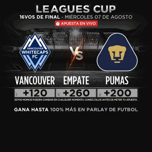 El equipo de la MLS parte como ligero favorito después de una Fase de Grupos casi perfecta en la cual cosechó cinco puntos. De acuerdo con los momios de Caliente.mx, el triunfo de Vancouver se paga en +120.