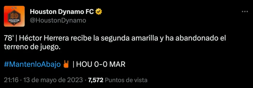 Esta fue la segunda expulsión de Héctor Herrera en lo que va en la temporada de la MLS, la primera vez fue ante el LA Galaxy, donde también vio dos cartones amarillos.