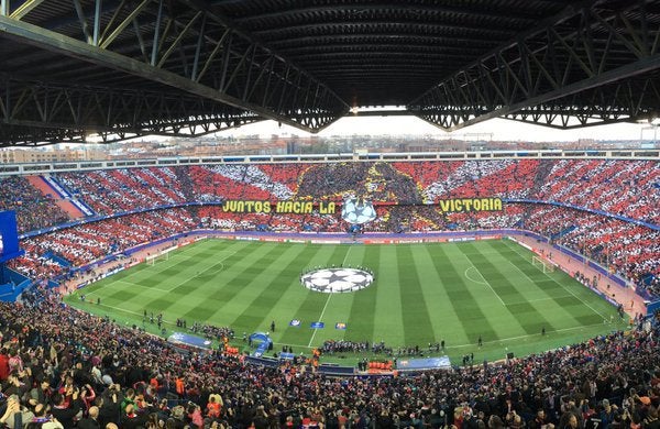 Los fanáticos del Atlético de Madrid mostraron este miércoles un impresionante mosaico en las tribunas del Vicente Calderón.