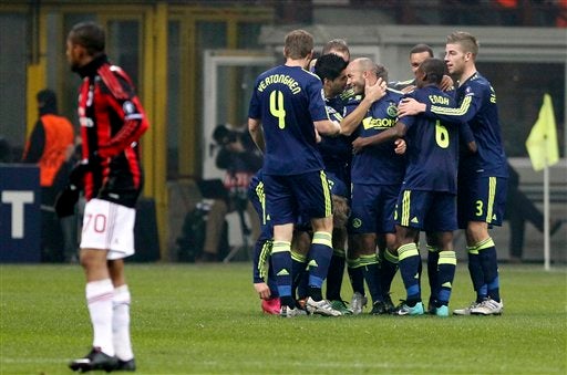 Poco antes de la hora de juego el conjunto de Frank De Boer sorprendió al Milan. Una acción de Siem de Jong facilitó el tanto de Demy De Zeeuw, que adelantó al cuadro holandés para amarrar su presencia en la Liga Europa.