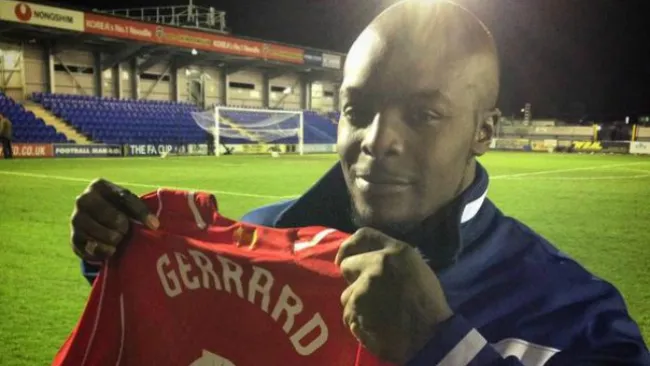 Adebayo Akinfenwa cumplió su objetivo de intercambiar la playera con Steven Gerrard, capitán del Liverpool. No sólo eso, sino que recibió la casaca número 8 con el autógrafo del mediocampista inglés.