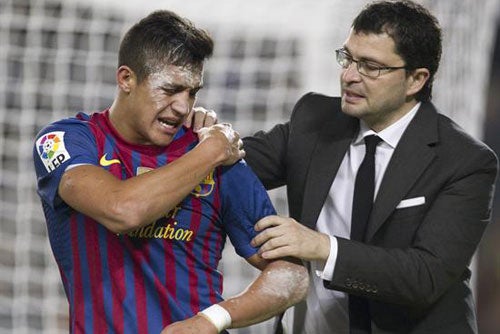 El atacante chileno Alexis Sánchez estará entre una y dos semanas de baja como consecuencia de un esguince en la clavícula izquierda, que se produjo en el partido Barça-Madrid, de la vuelta de los Cuartos de Final de la Copa del Rey.