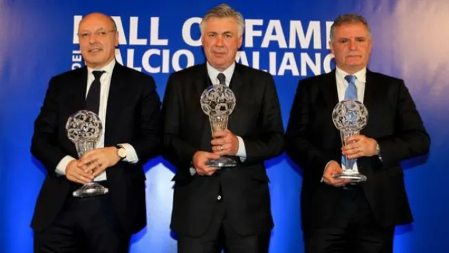 #HallOfFame del #Calcio Italiano 2014: la premiazione di #Marotta, @MrAncelotti e #Braschi @AIA_it #VivoAzzurro pic.twitter.com/7t0cKiwXGH