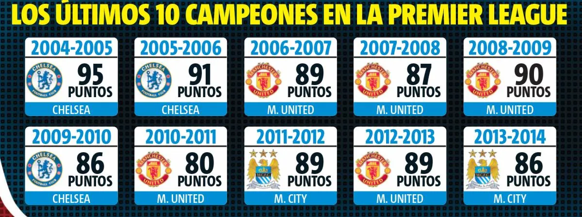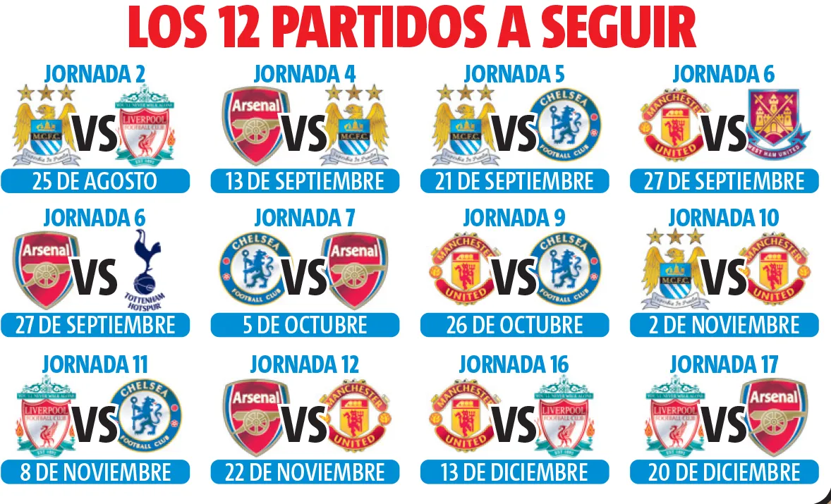 Manchester United, Chelsea, Manchester City, Arsenal, Liverpool y hasta Tottenham son los equipos que pueden salir como campeones.