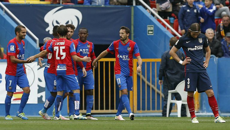 El Atlético de Madrid cayó en su visita a la cancha del colero y ya descendido Levante, por 2-1, un resultado que deja al conjunto madrileño sin opciones de pelear por el título de Liga, tras la victoria del Barcelona frente al Espanyol.