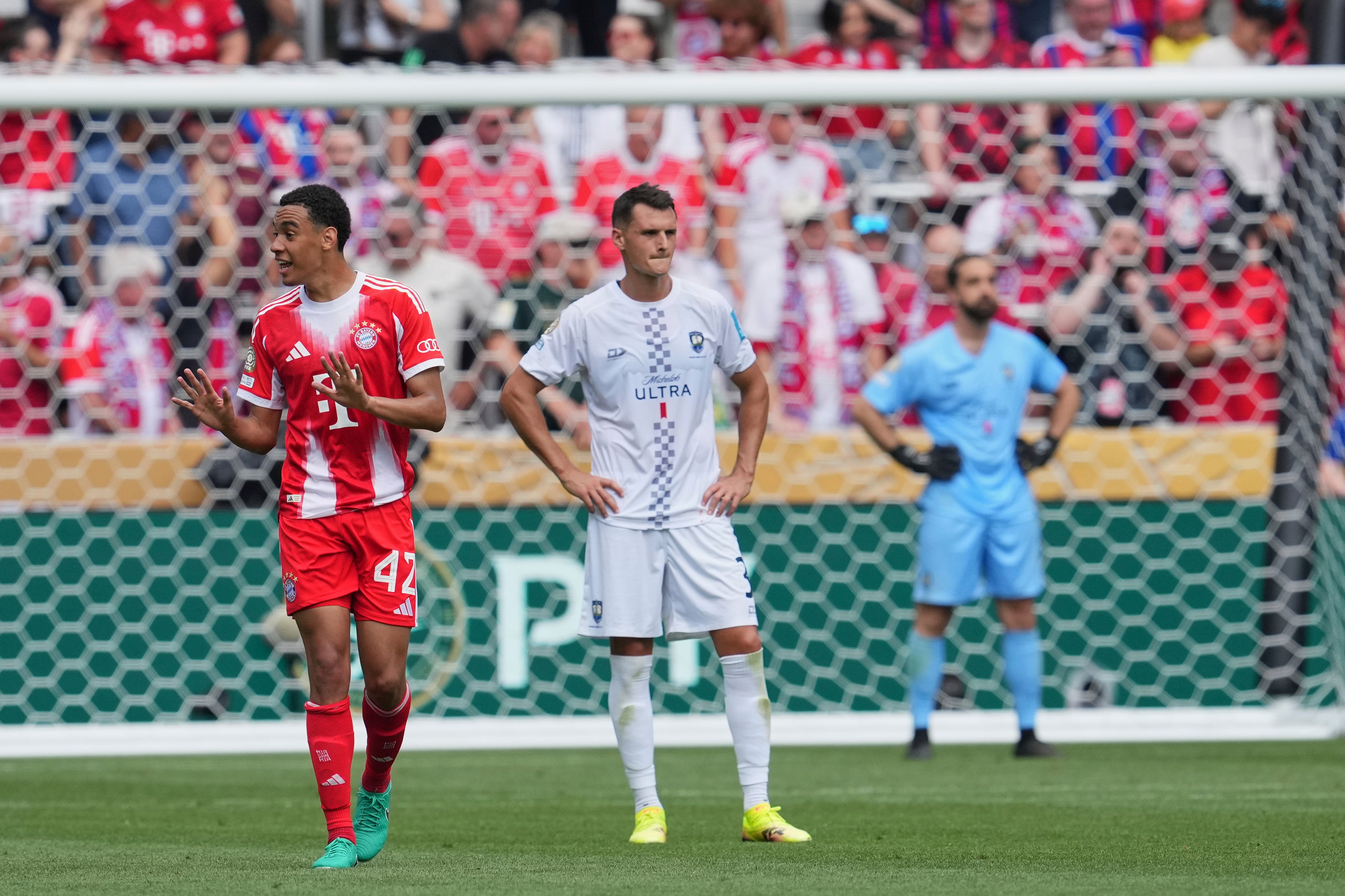 En la segunda mitad, inició el show de Jamal Musiala, luego de que el juvenil alemán colocó el 7 a 0 a pase de Müller y posteriormente desde los 11 pasos amplió el marcador con el 8 a 0. Ya con un papel como figura del partido, cerró la cuenta con el tercer gol a su cuenta para el 9 a 0.