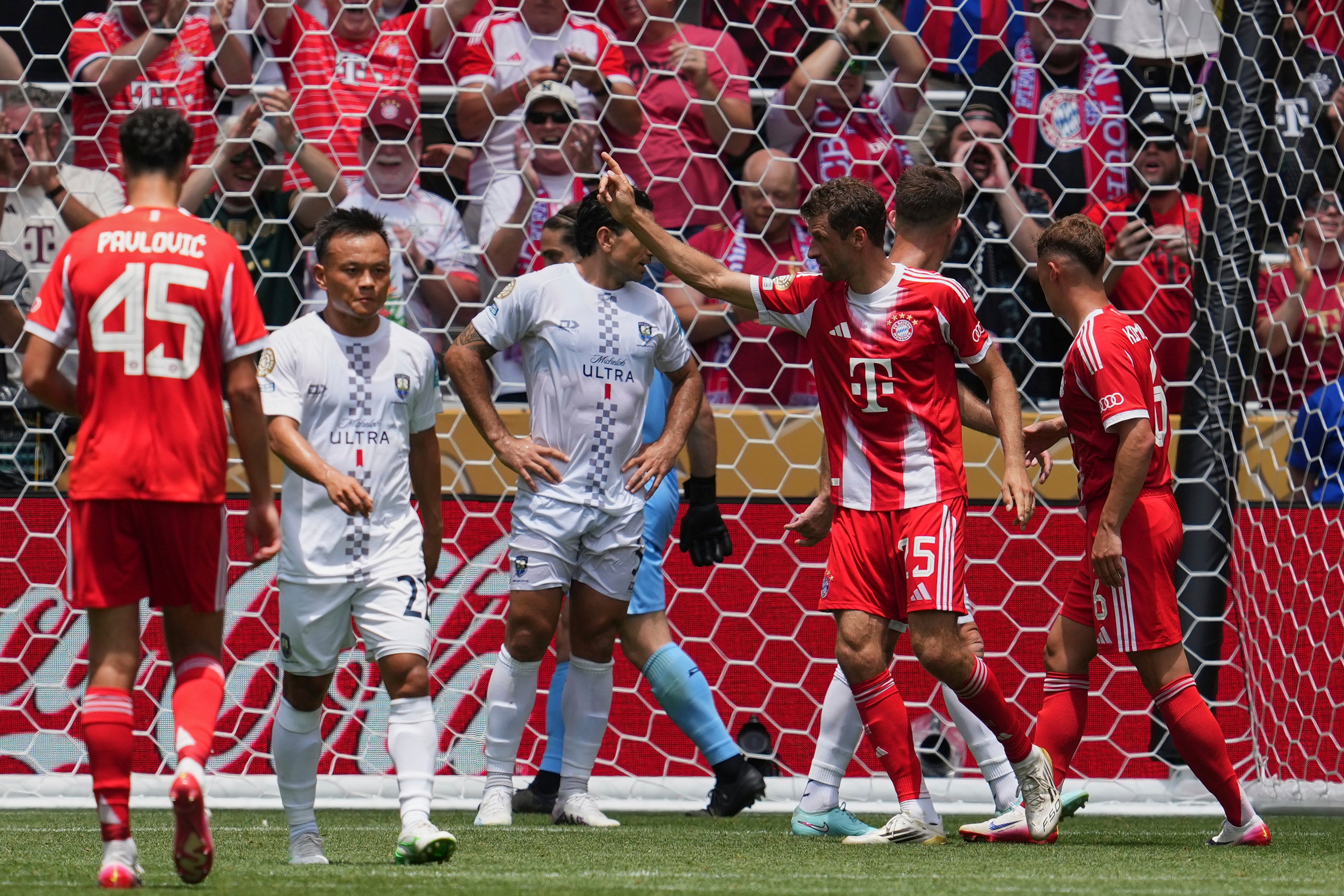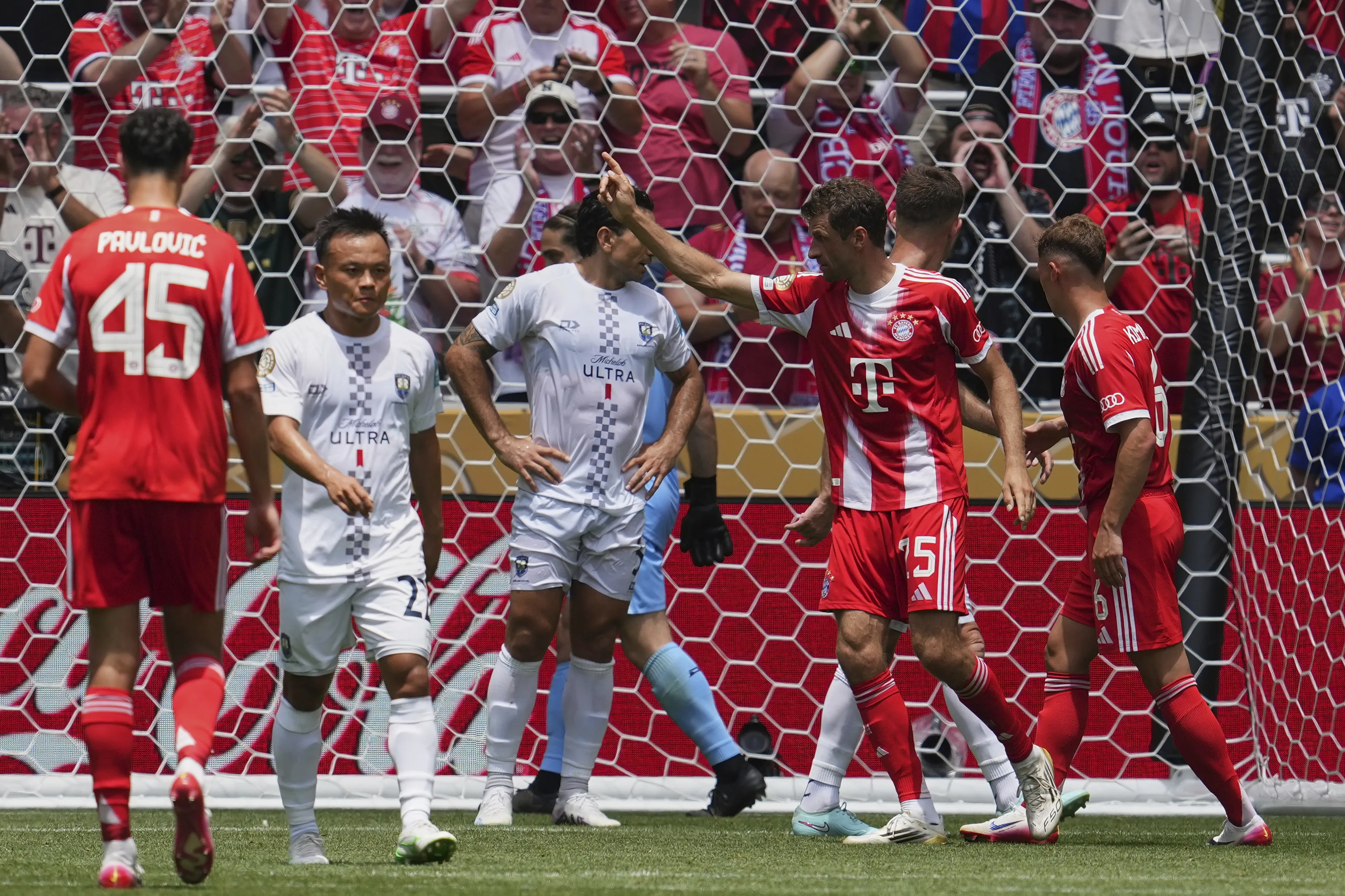 En tiempo agregado y con el cuadro del Auckland City tirado atrás, apareció Thomas Müller para conseguir su primer tanto del encuentro y dos minutos después, Olise se hizo presente para conseguir su doblete y el 6 a 0 al descanso.