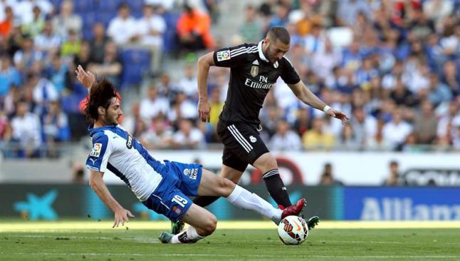 Karim Benzema, delantero internacional francés del Real Madrid, sufre una sobrecarga muscular que le impidió acabar el encuentro ante el Espanyol en Cornellá-El Prat y es duda para disputar la última jornada de Liga ante el Getafe.