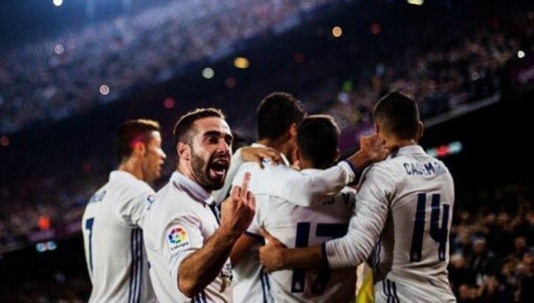 La igualada de último minuto por parte del Real Madrid en el Clásico español provocó la alegría tanto de aficionados merengues como de los propios jugadores, así quedó demostrado cuando en el festejo de gol, Dani Carvajal, le 'pintó el dedo' a la afición blaugrana.