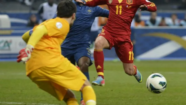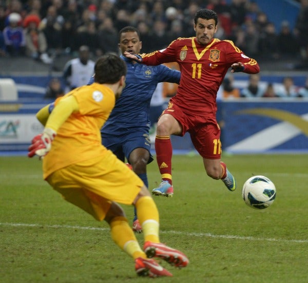 El protagonismo recayó de nuevo en Pedro Rodríguez. Él inició la acción del único gol y la culminó, tras un pase de Nacho Monreal desde la banda derecha francesa, el flanco más débil del combinado galo, en el que superó a un inconsistente Christophe Jallet. Desde ahí puso el centro al extremo, que remató con todo la victoria.