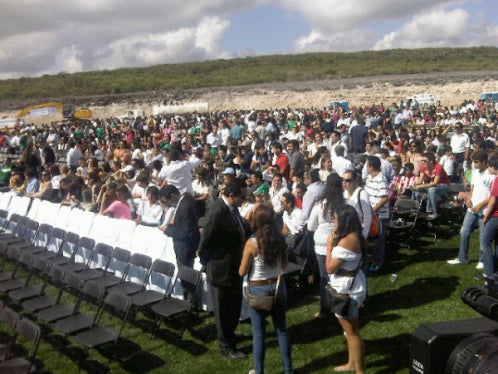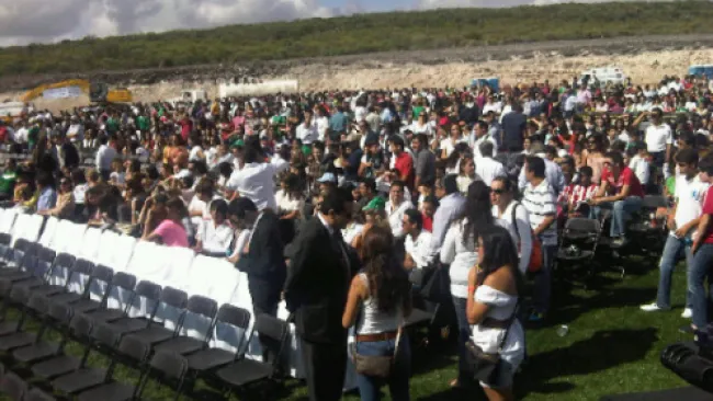Los afortunados tuvieron que esperar alrededor de hora y media para entrar, luego de una fila de autos que se extendía por un kilómetro aproximadamente; esto después de que el inmueble puso un primer retén para verificar que los aficionados o estudiantes tuvieran la pulsera.