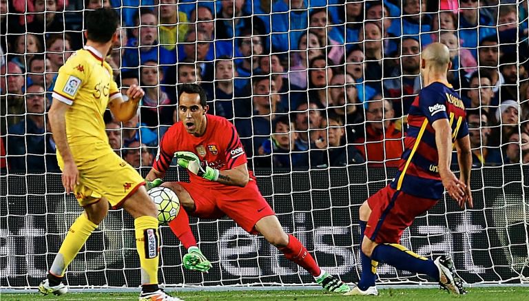 Claudio Bravo, portero chileno del Barcelona, sufrió en el duelo contra el Betis una lesión en el sóleo de la pierna derecha, aunque se desconoce si la misma le impedirá jugar el próximo partido de la Liga contra Espanyol en el Camp Nou.