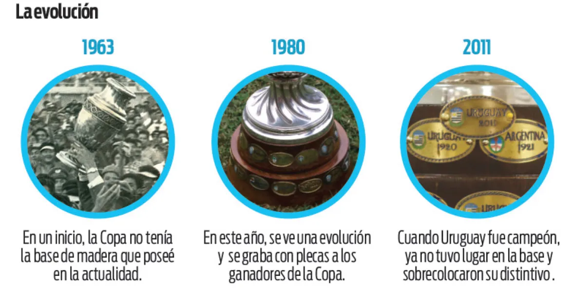 El galardón al campeón de la Copa América, que fue comprado en una joyería de Buenos Aires, Argentina, en 1917, está decorado en plata, tiene una base de madera con los escudos de los monarcas y pesa nueve kilos.