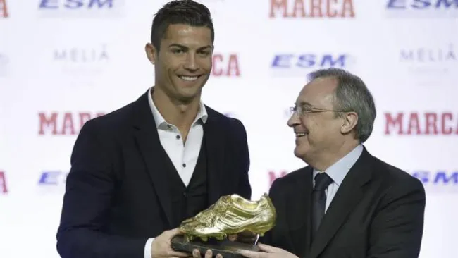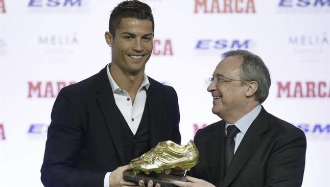 Florentino Pérez, presidente del Real Madrid, definió al delantero portugués Cristiano Ronaldo, que recibió la Bota de Oro, el trofeo que le acredita como máximo goleador europeo de la pasada temporada, como "el mejor futbolista del mundo" y "digno heredero" de Alfredo Di Stéfano, fallecido este año.