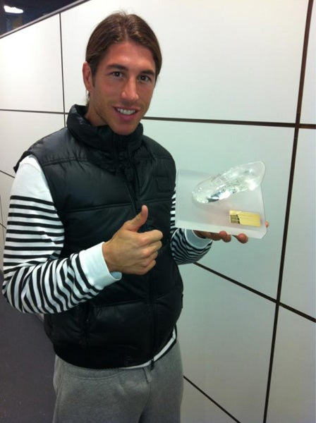 Con una foto de Sergio posando con el trofeo y una broma: "A algunos le dan la Bota de Oro y a otros la de cristal", el defensa andaluz desveló el regalo de Cristiano, que confirmó posteriormente con un nuevo tweet.