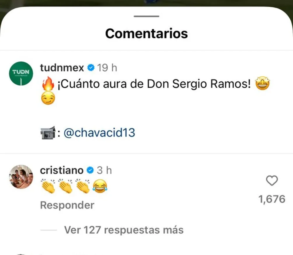 En una publicación del segundo gol de Sergio Ramos en la Liga MX, Cristiano Ronaldo comentó con emojis de aplausos y uno más riéndose, lo que sorprendió a los aficionados que no esperaban que el portugués comentara un video sobre el futbol mexicano.