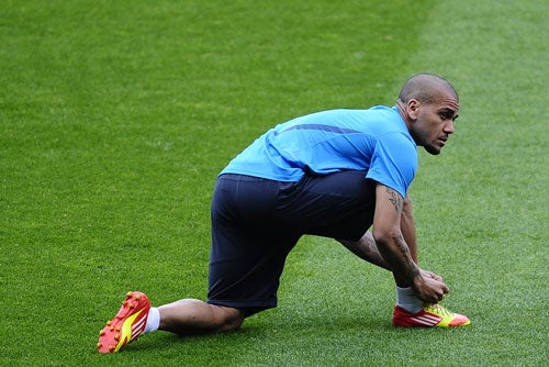 Alves ha sido uno de los dieciocho futbolistas del primer equipo que se han ejercitado esta tarde en la Ciudad Deportiva Joan Gamper, en una sesión en la que también ha estado Ibrahim Afellay, quien ultima su puesta a punto tras estar seis meses parado por culpa de una grave lesión de rodilla.