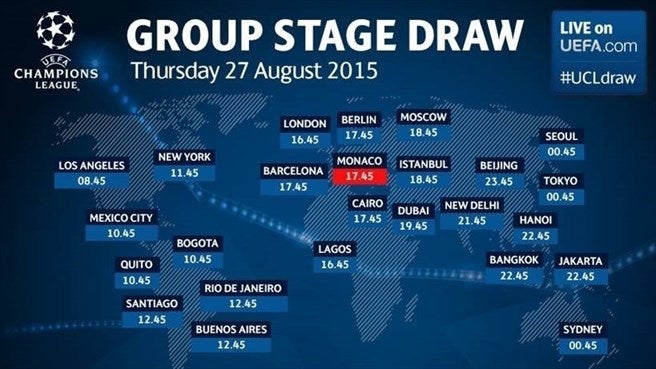 Futbol Futbol Internacional Definen horario para sorteo de Champions LeagueLos 32 participantes del certamen europeo conocerán su suerte el próximo jueves La lista de horarios para el sorteo de la Champions | UEFAREDACCIÓN RÉCORD24 de Agosto de 2015