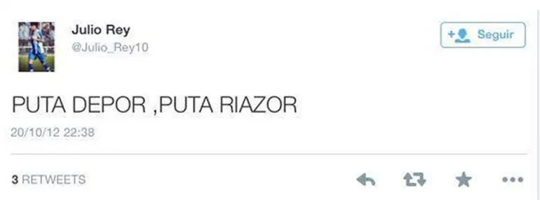 El conjunto coruñés anunció este lunes la contratación del futbolista por una temporada con la opción de extenderlo; sin embargo, horas después de firmar el contrato, las redes sociales le jugaron en contra, al difundir un tuit realizado por Rey en el 2012 en el cual insultaba al Deportivo.