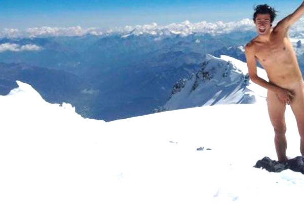 El alpinista español Killian Jornet no tuvo ningún pudor al posar desnudo en la cima del Montblanc, a una altura de más de 4800 metros sobre el nivel del mar.