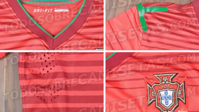 El portal todosobrecamisetas se encargó de filtrar el renovado jersey de los lusitanos, que presenta pequeños pero relucientes detalles en verde al final de las mangas, sobre el margen del cuello, y en ambos hombros; todo ello, aun cuando el combinado portugués se encuentra en plena pelea de la Fase de Grupos, dentro de la clasificación europea, para buscar un boleto al Mundial en tierras sudamericanas.