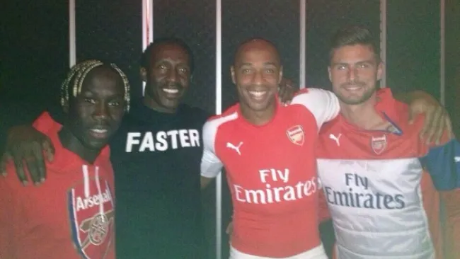 El medallista olímpico, Linford Christie, quien ganó el oro en los 100 metros de Barcelona 1992, publicó una foto en su cuenta de Twitter, donde aparece junto a la ex estrella del Arsenal, Thierry Henry, Olivier Giroud y Bacary Sagna, quienes portan el jersey, el kit de entrenamiento y una sudadera de los ';Gunners';, respectivamente.