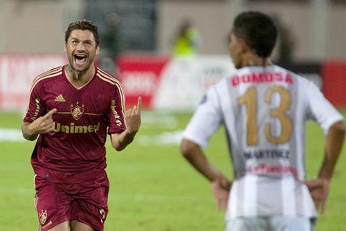 Y cuando el partido parecía abocado al 0-0, Rafael Sobis, recién entrado en sustitución de Fred, se sacó de la manga lo mejor del partido, al colocar un tiro libre desde 30 metros junto a la cepa del poste derecho de Forero tras ser tocado por la barrera local.