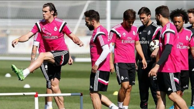 Tras el calentamiento, Bale fue uno más en el trabajo de potenciación muscular, los ejercicios de presión y posesión del esférico y el circuito final de disparos a portería, centros y remates. Este fin de semana Real Madrid jugará un partido clave por el título de la Liga española, por lo que Ancelotti deberá contemplar si hace uso de él o no.
