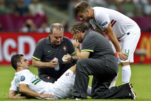 Postiga, titular en el once de Paulo Bento, abandonó el jueves el partido de Cuartos de Final ante la República Checa cuando se lesionó él solo en un sprint en el minuto 40 y fue sustituido por Hugo Almeida, delantero del Besiktas turco.