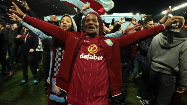 Los seguidores del conjunto local se metieron al campo del Villa Park para festejar con los jugadores y de paso burlarse de los rivales, quienes quedaron eliminados de la competición.