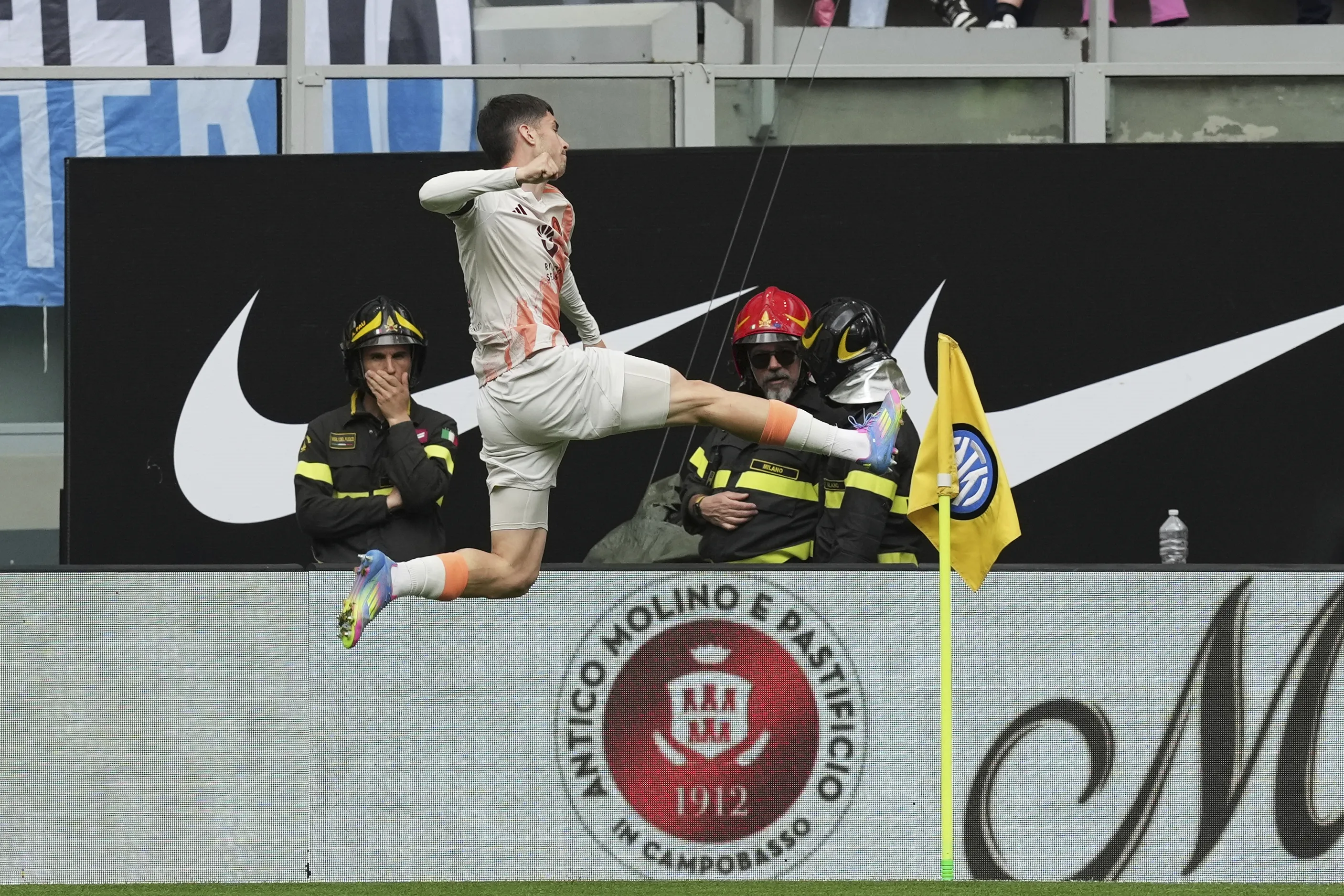 Para confirmar su buena racha de la mano de Claudio Ranieri, la Roma propuso desde un inicio en el Giuseppe Meazza. Fue entonces que al minuto 22', luego de una jugada interesante por la banda izquierda, Matías Soulé remató de volea dentro del área grande y consiguió lo que posteriormente fue el único gol del juego.