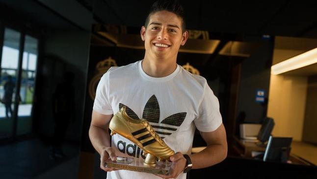 El jugador colombiano del Real Madrid, James Rodríguez, recibió este viernes la Bota de Oro como máximo goleador del pasado Mundial de Brasil.